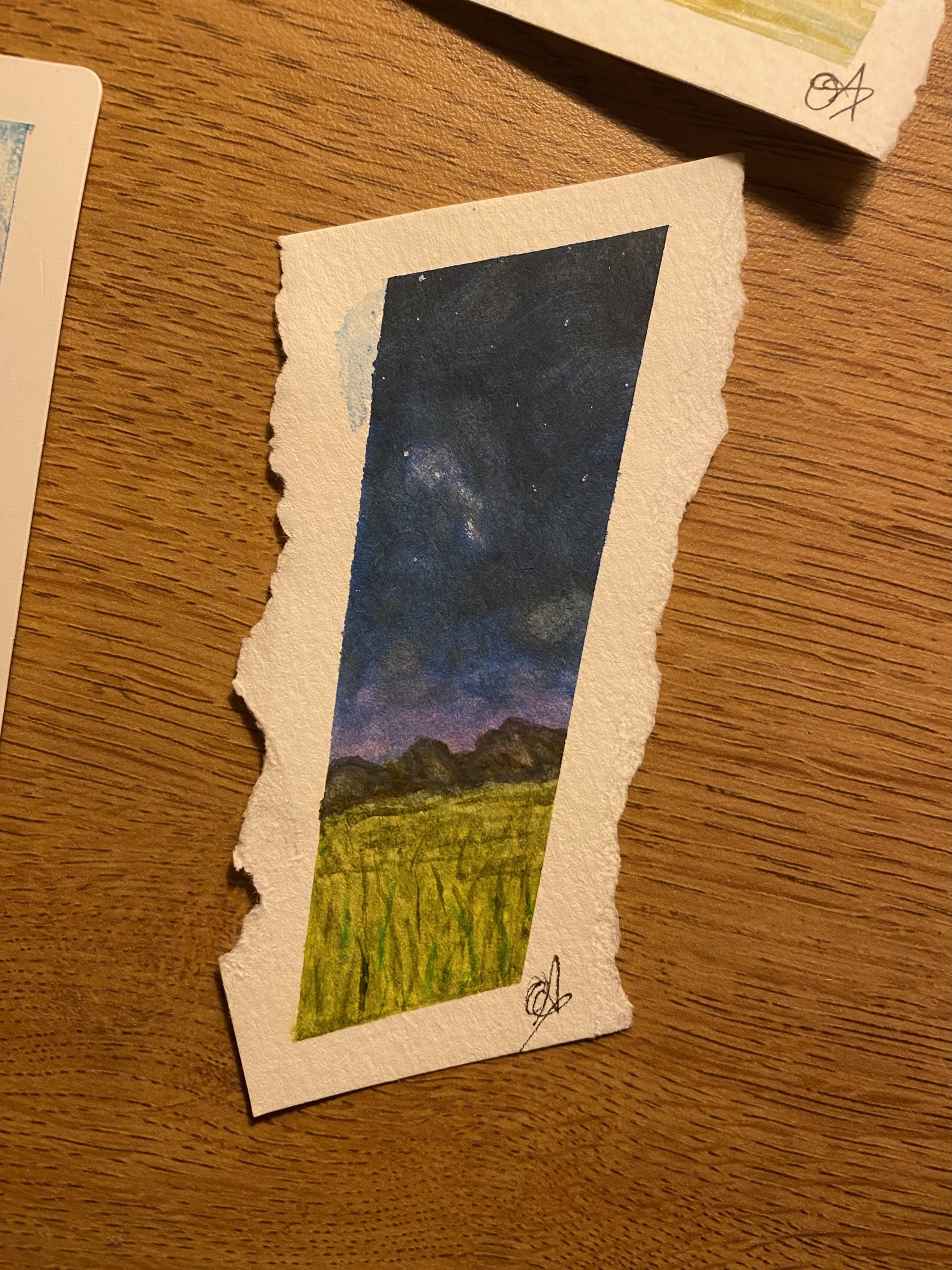 Pj’s, watercolor on paper with an acrylic paint marker.